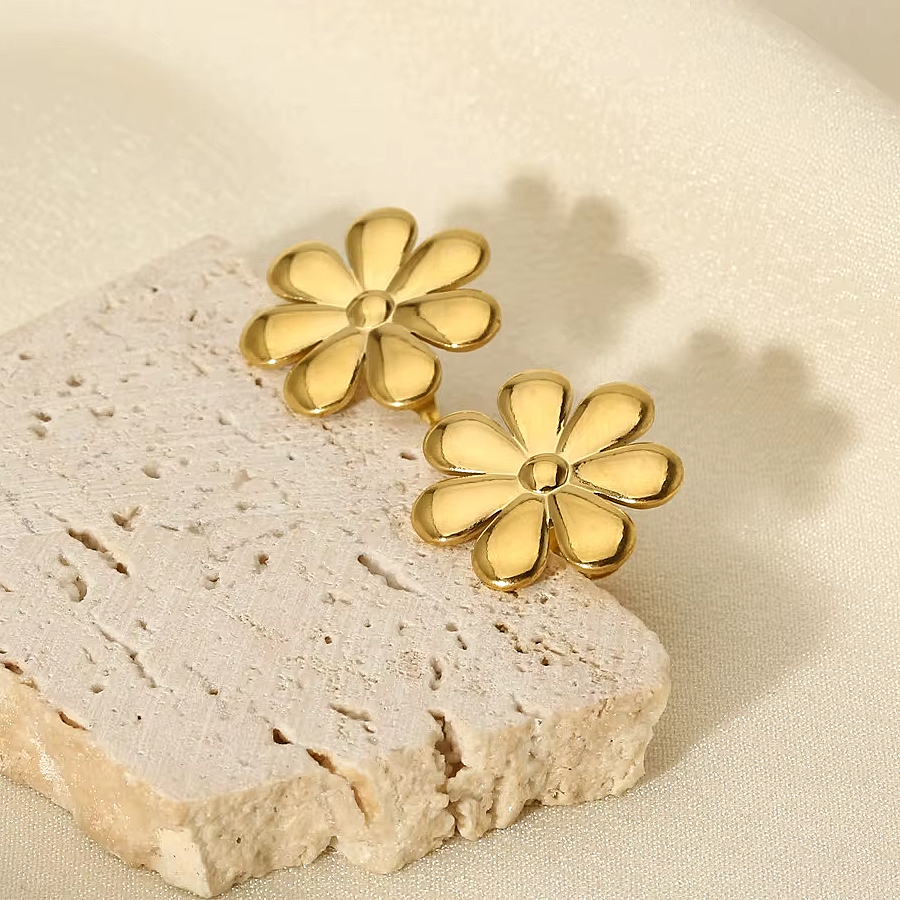 Boucles d'oreilles Fleur ROMA en acier chirurgical doré