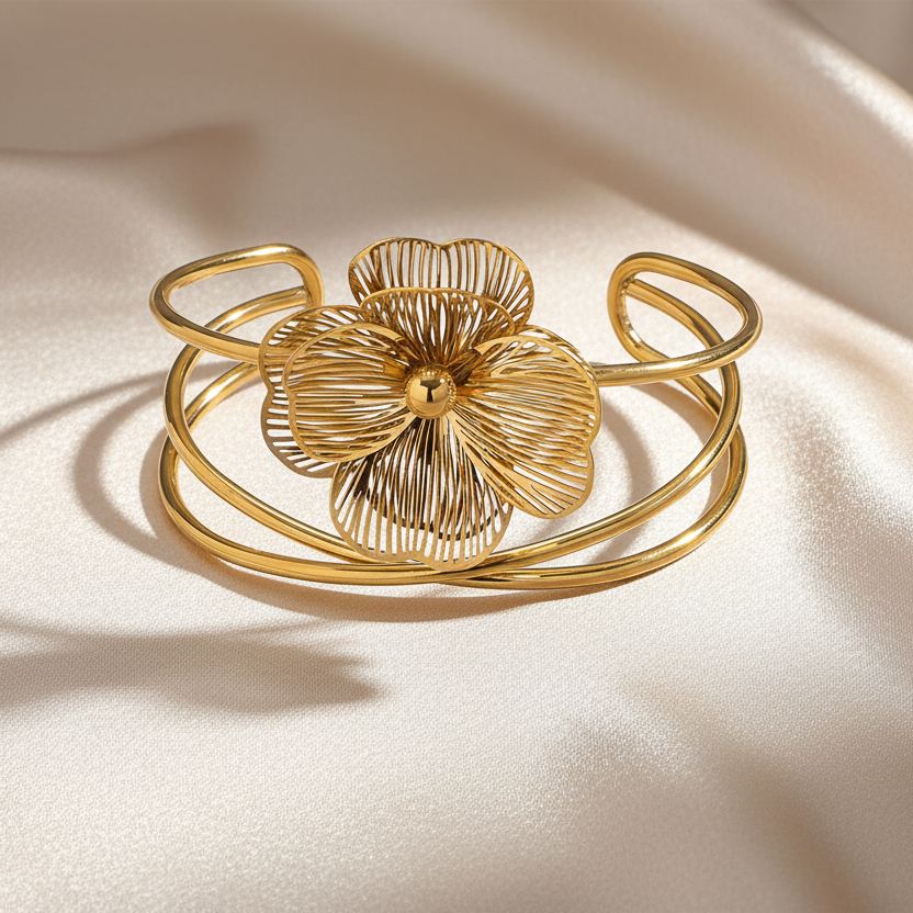 Bracelet manchette Fleur ATHENA – Acier chirurgical doré ou argenté