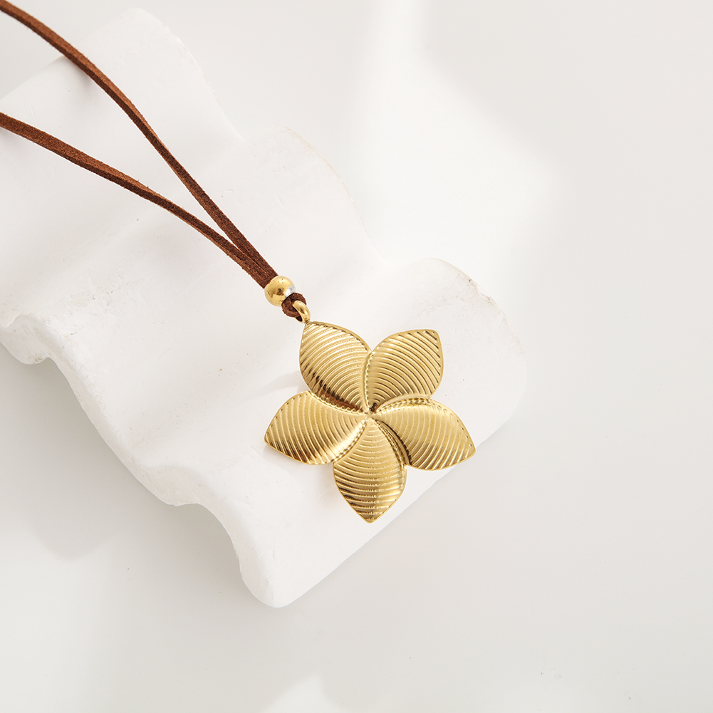 Collier Fleur style bohème SORAYA en acier inoxydable et corde velours marron